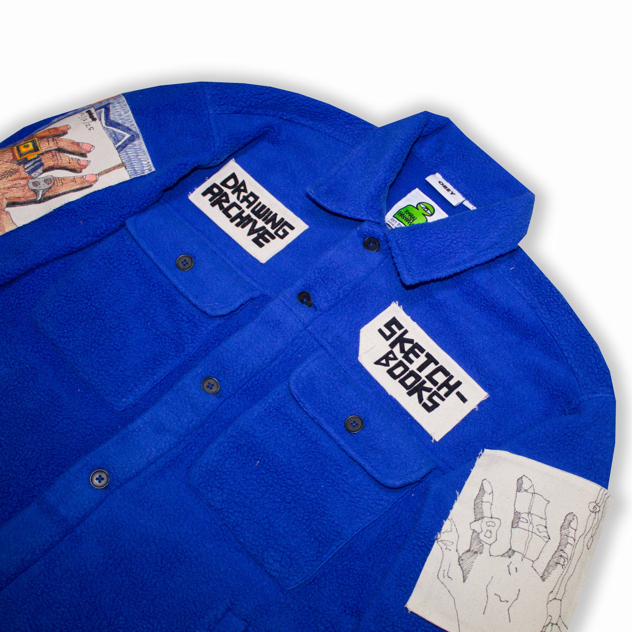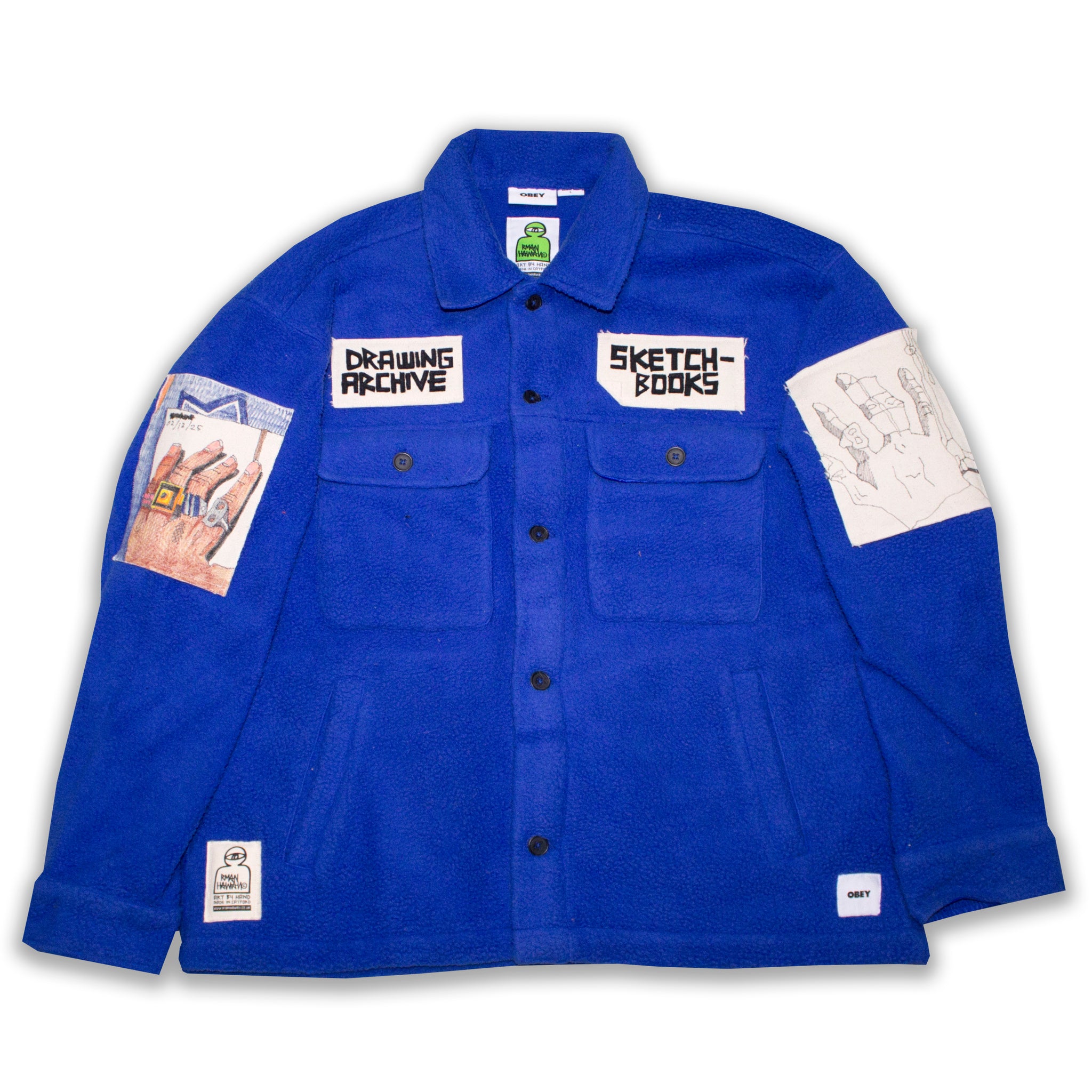 Canvas patches featuring hand drawn renditions of various pages from Ryan Hawaii’s Sketchbook Archive.